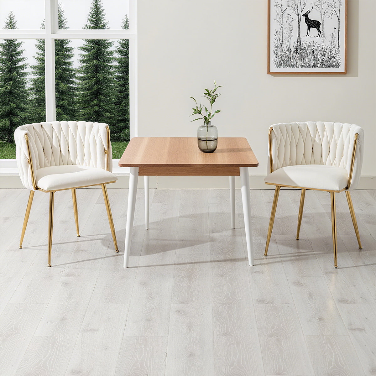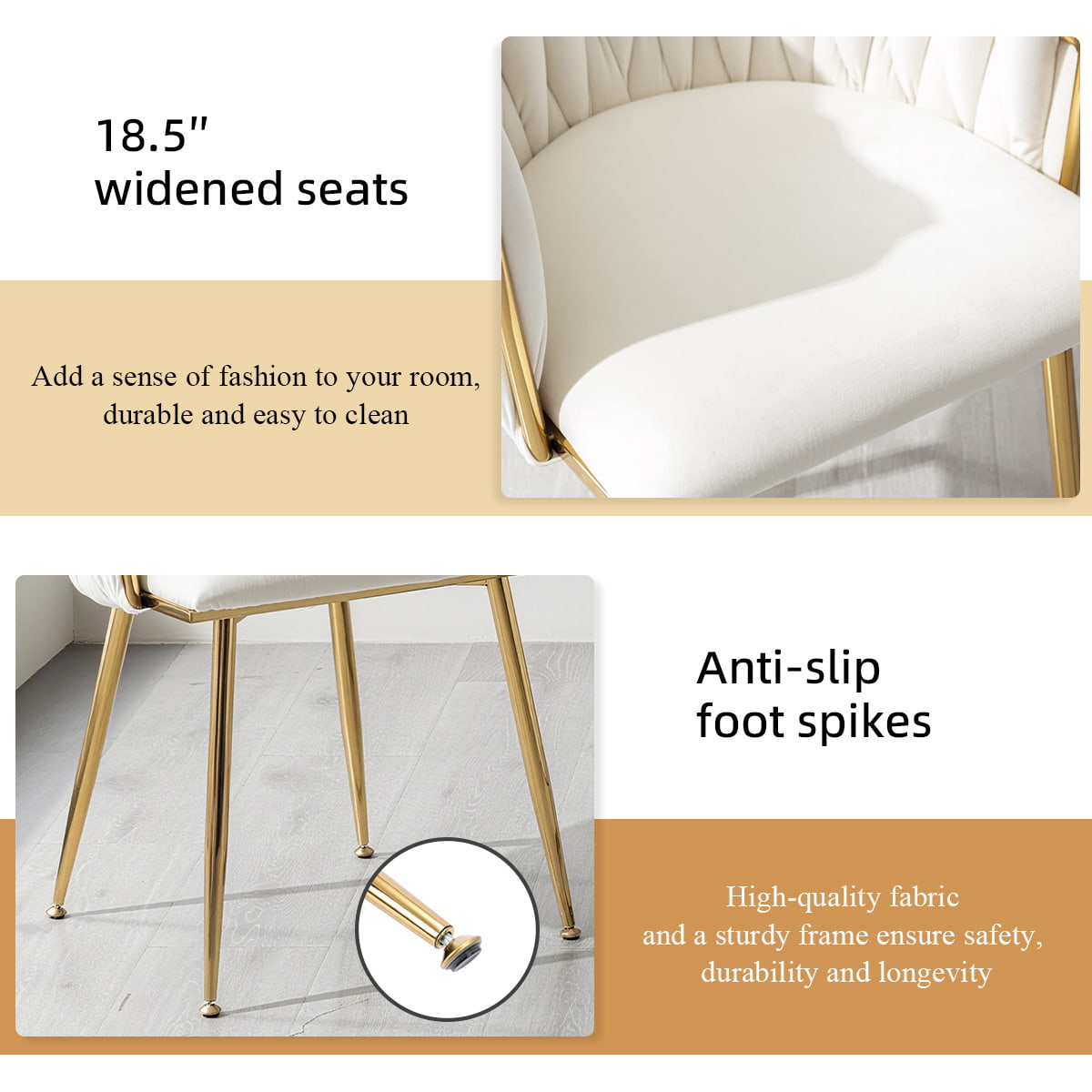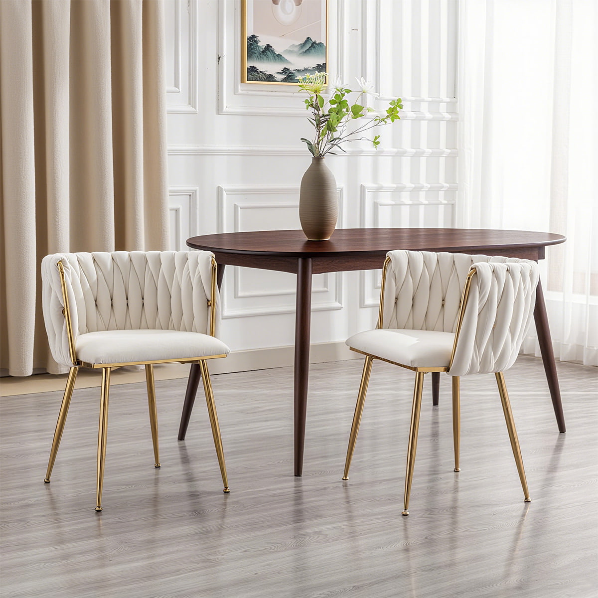 Elefántcsont bársony kárpitozott étkezőszék – modern szövött háttámlával díszített szék arany fém lábakkal, század közepén készült oldalsó szék étkezőbe, nappaliba, konyhába vagy mosdóba