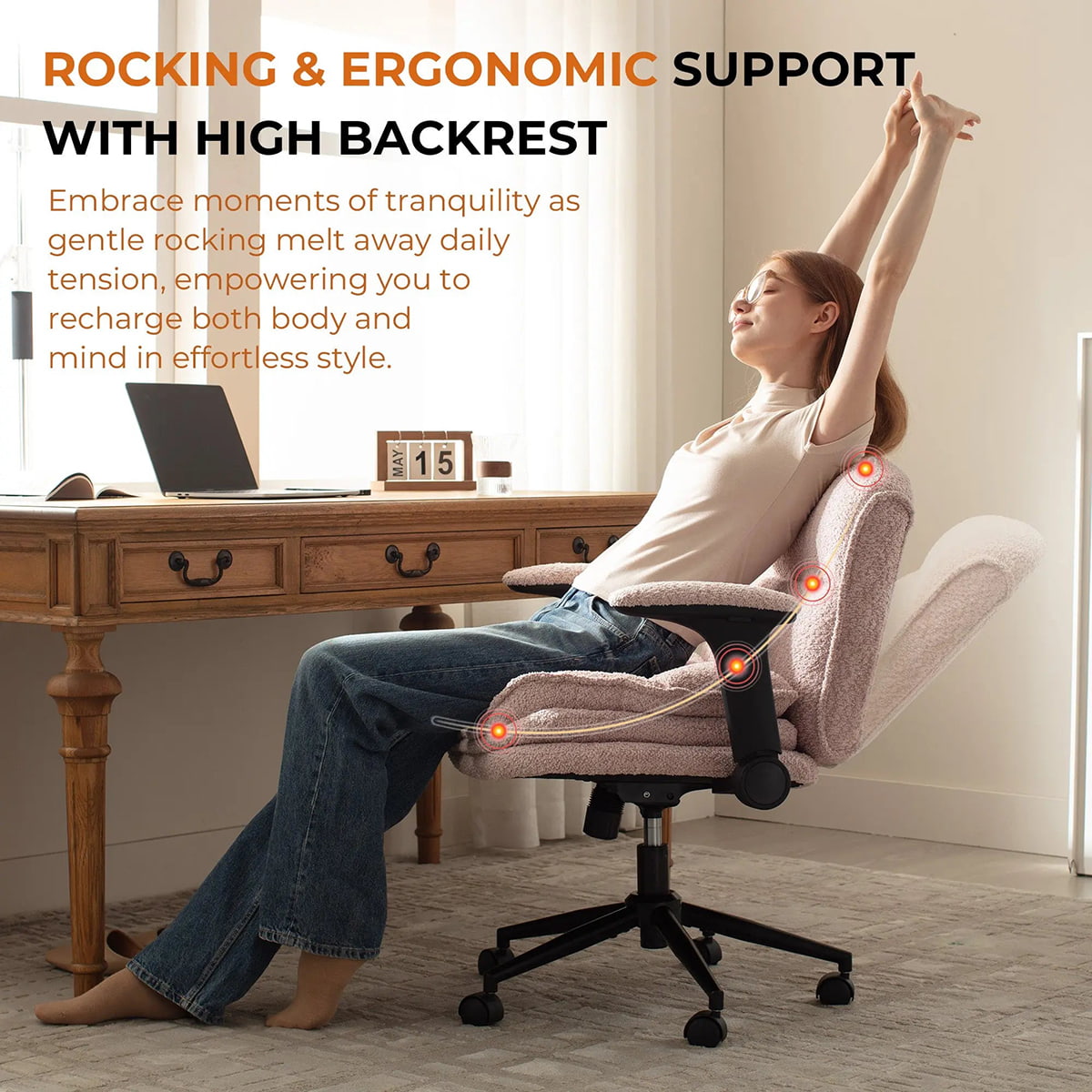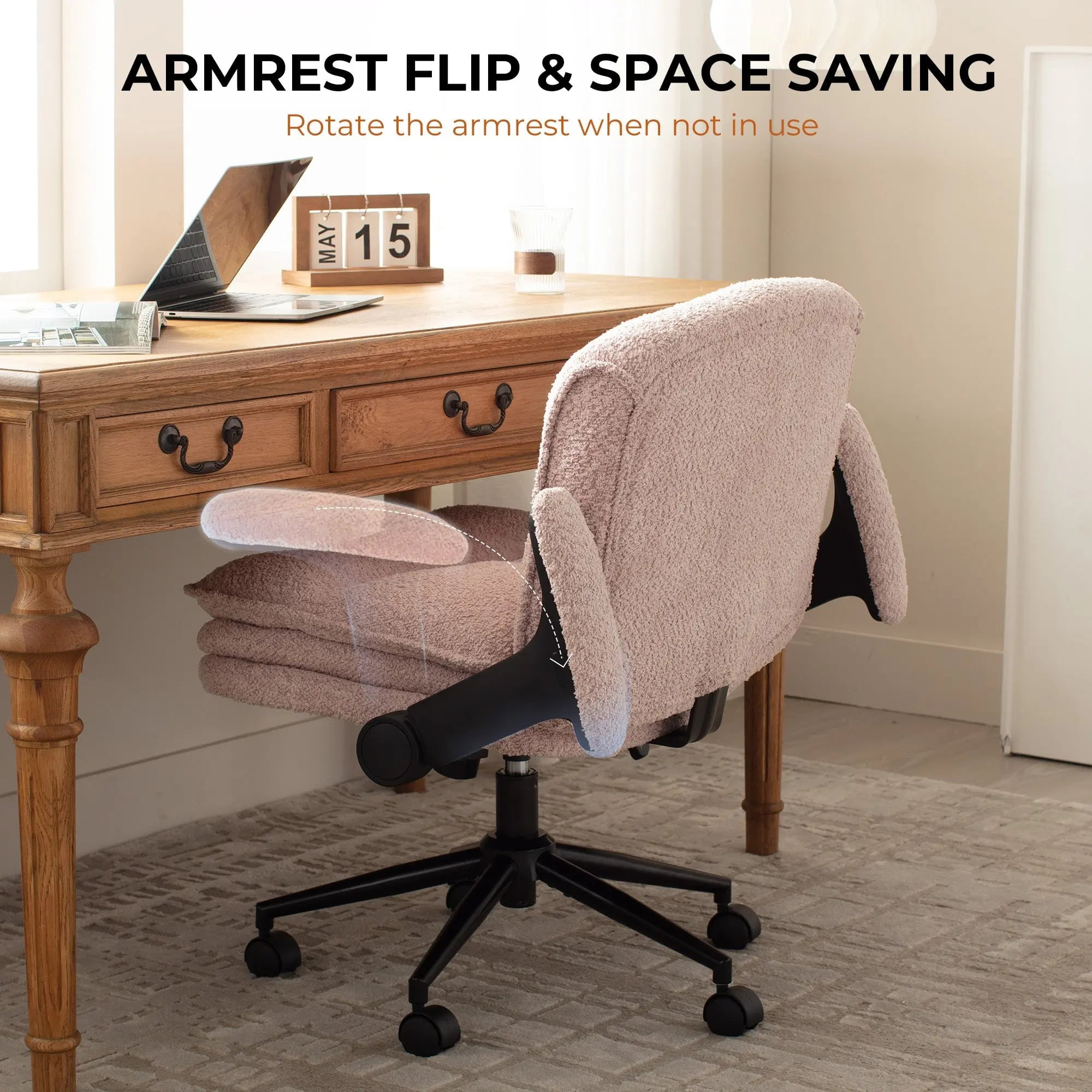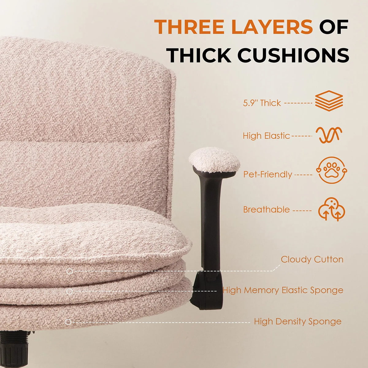 ① Criss Cross irodai szék felhajtható karokkal és 3 rétegű párnával — széles ülésű, ergonomikus Bouclé íróasztal kerekekkel