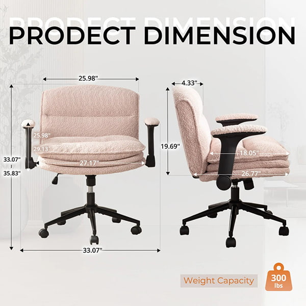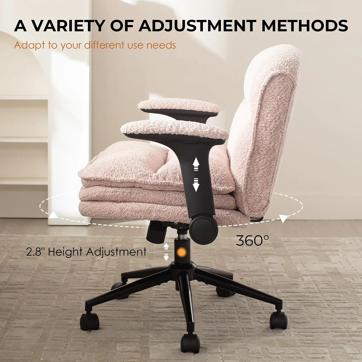 ② Ergonomikus, keresztben álló íróasztal szék állítható karfákkal, 360°-ban forgatható és vastag párnákkal — Bouclé otthoni irodai szék