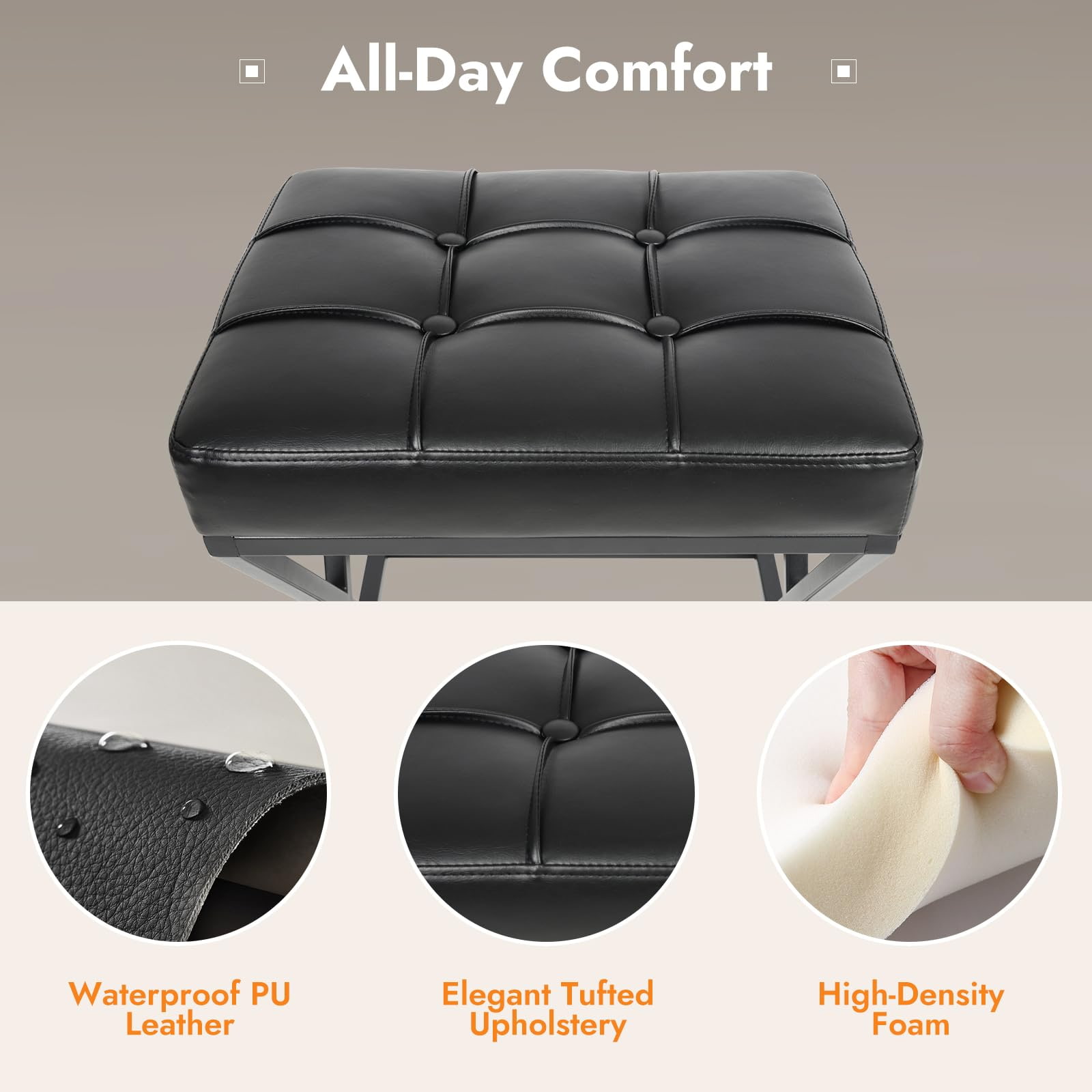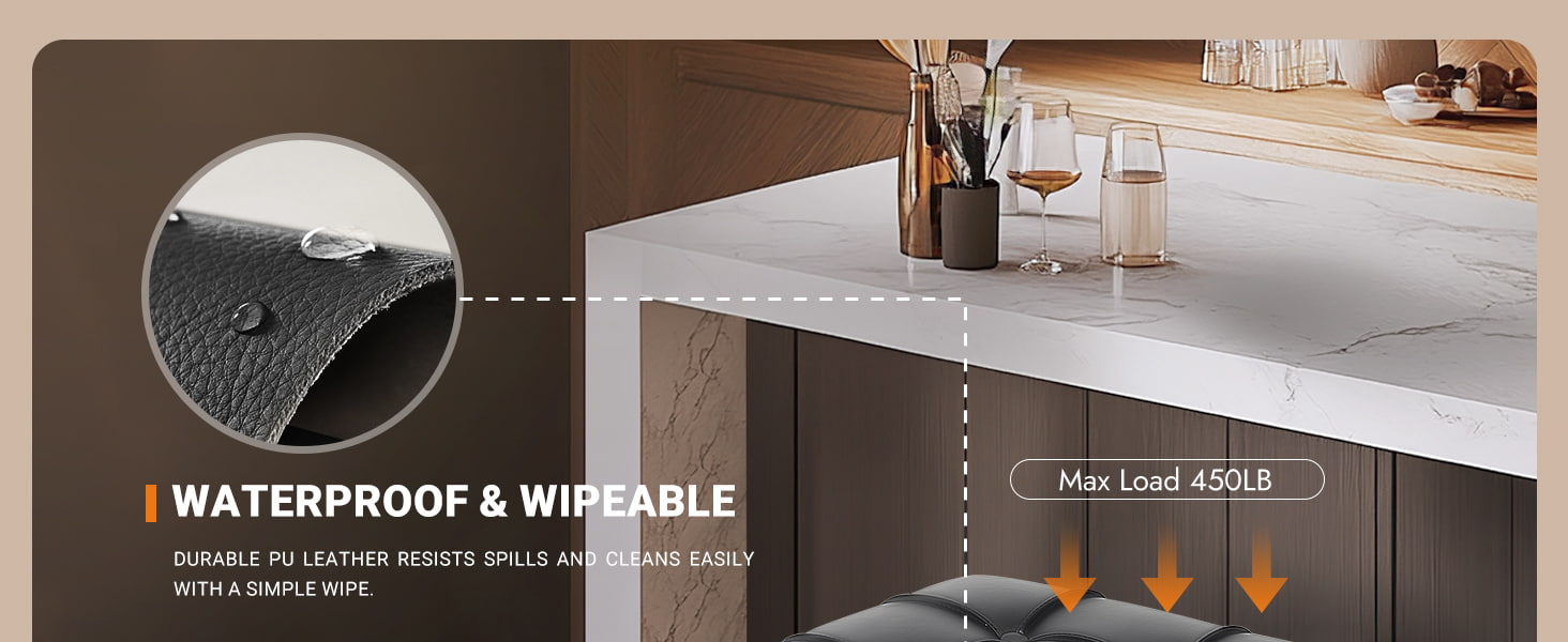 Vízálló, törölhető PU bőr ellenáll a kiömléseknek, a foltoknak és a napi kopásnak.